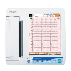 次に、両手首と両足首の4ヶ所、胸に6ヶ所電極を取り付け、心電図を記録します。